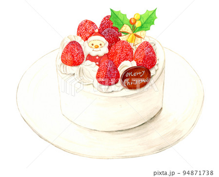 手描き水彩の皿に乗ったかわいいクリスマスケーキのイラストのイラスト素材94871738- PIXTA。