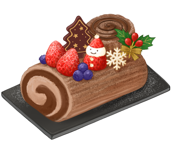 クリスマスケーキのイラスト「ブッシュドノエル」かわいいフリー素材集 いらすとや。