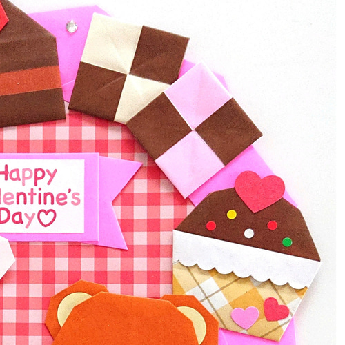 バレンタインのリース飾り創作折り紙 カミキィ。