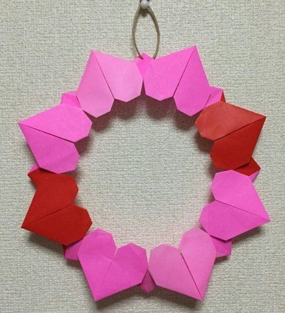2月はバレンタインデー折り紙のハートのリースはいかが。