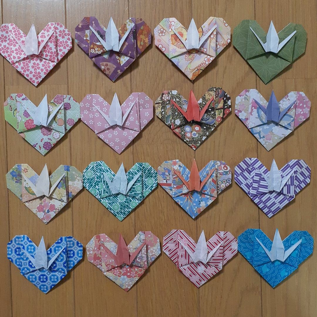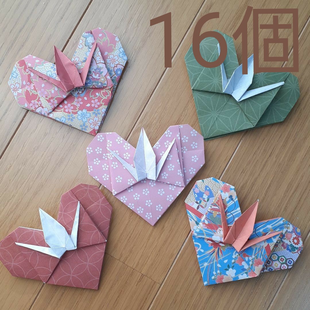 ハート鶴16個1月2月3月冬折り紙バレンタインプレゼント卒園卒業ディスプレイ ひな祭り 壁面飾り。