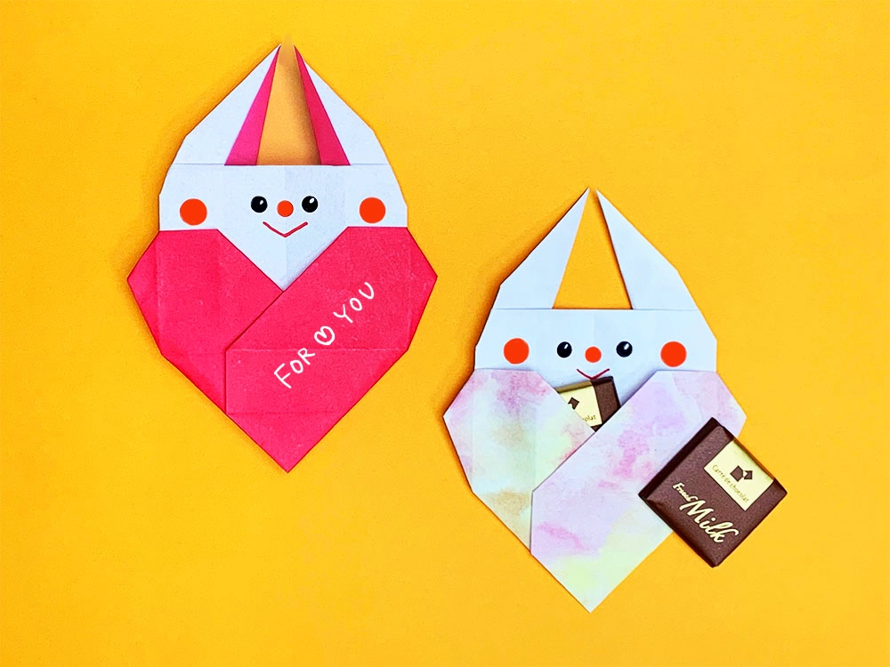 バレンタインの折り紙 ハートチョコレートと白くまの作り方。
