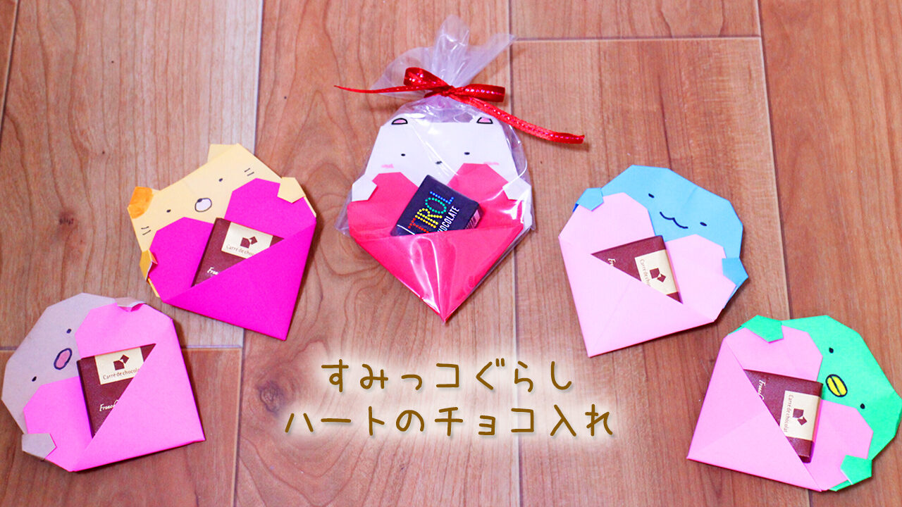 バレンタイン折り紙 すみっコぐらしのハートのチョコ入れの作り方mama life blog。