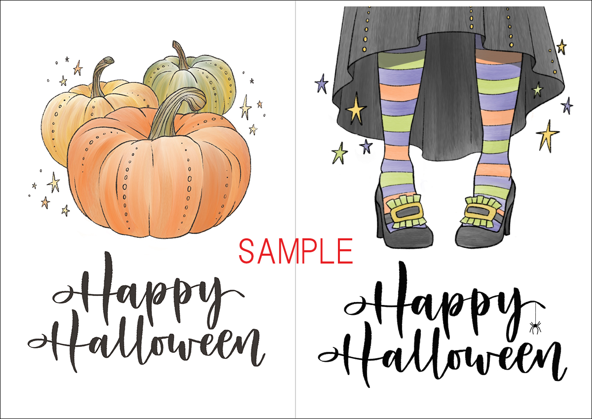 グリーティングカード用ハロウィンのポストカード無料テンプレートイラスト素材 - フリーランスWebデザイナーのリアル。