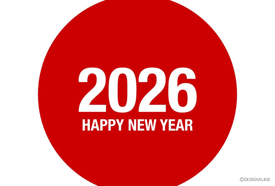 日の丸Happy New Year 2026イラストのフリー素材イラストイメージ。