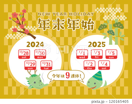 2024年→2025年 年末年始休み日程のイラスト素材120165405- PIXTA。