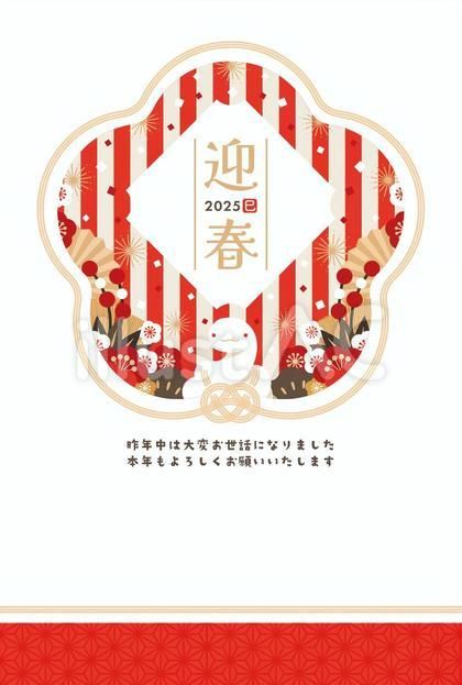 2025年 巳年の縁起物 年賀状囲み・縦02のイラスト素材FYI08075554ストックフォトの QleanMarket キュリンマーケット。