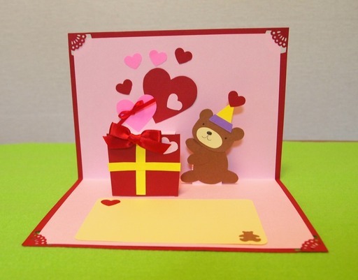 バレンタイン くまとハートの飛び出すメッセージカード作り方。