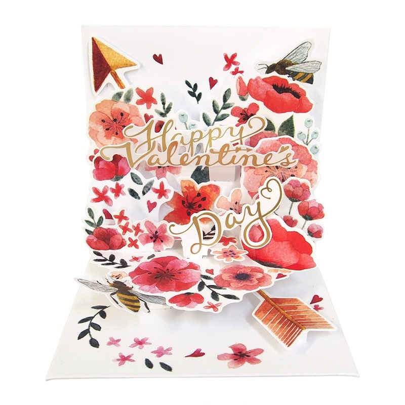 UP WITH PAPERバレンタインポップアップ グリーティングカード花×矢×蜂バレンタイン雑貨,バレンタインカード, ポップアップカード雑貨ロビン。