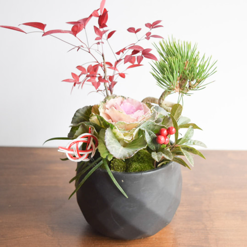 盆栽 モダン おまかせ お正月 福 縁起物 植物 五葉松 梅 ぼんさい 正月飾り 寄植え。