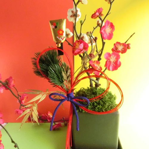 お正月飾り付き 取り外し可 紅白梅2本立 ミニ盆栽 フェイク光触媒加工 しめ縄・しめ飾り miriam125 通販4853128Creema クリーマ。
