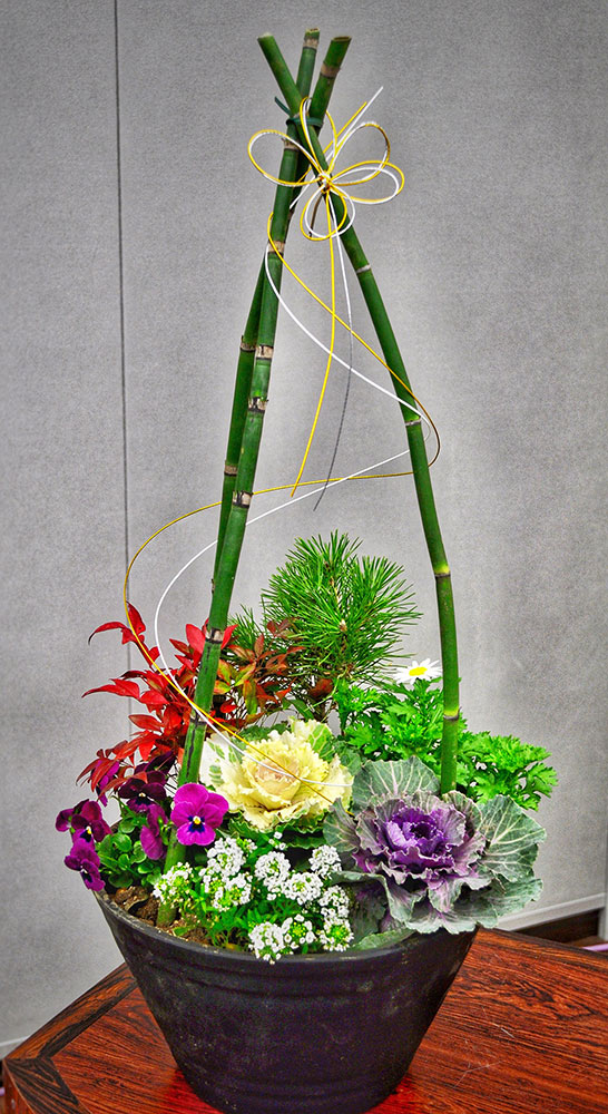 お正月飾りのリメイク~彩花盆栽教室ビギナー3年目12月~ – 清香園スタッフブログ。