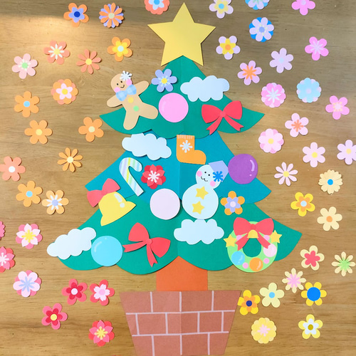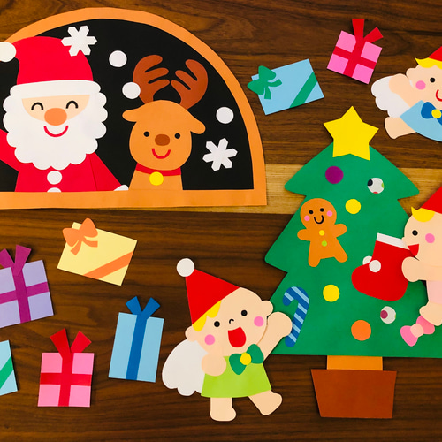 クリスマス ツリー サンタさん トナカイ 画用紙 壁面飾り ガーランド 保育教材 ウォールステッカー・ウォールデコ Ruu 通販16464384Creema クリーマ。