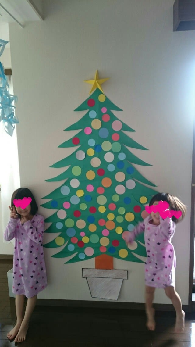 画用紙で巨大クリスマスツリー・壁面・12月❤︎DIY paper tree craft big christmas tree on thewall❤︎ 818。