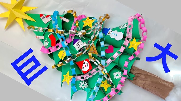 クリスマス壁面製作 画用紙でクリスマスツリーTikTok。