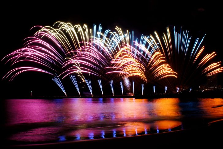 牧之原市相良サンビーチであるさがら海上花火大会のカラフルな水上スターマイン 静岡県 の写真素材119774227- PIXTA。