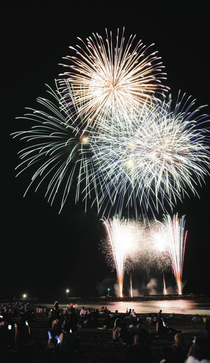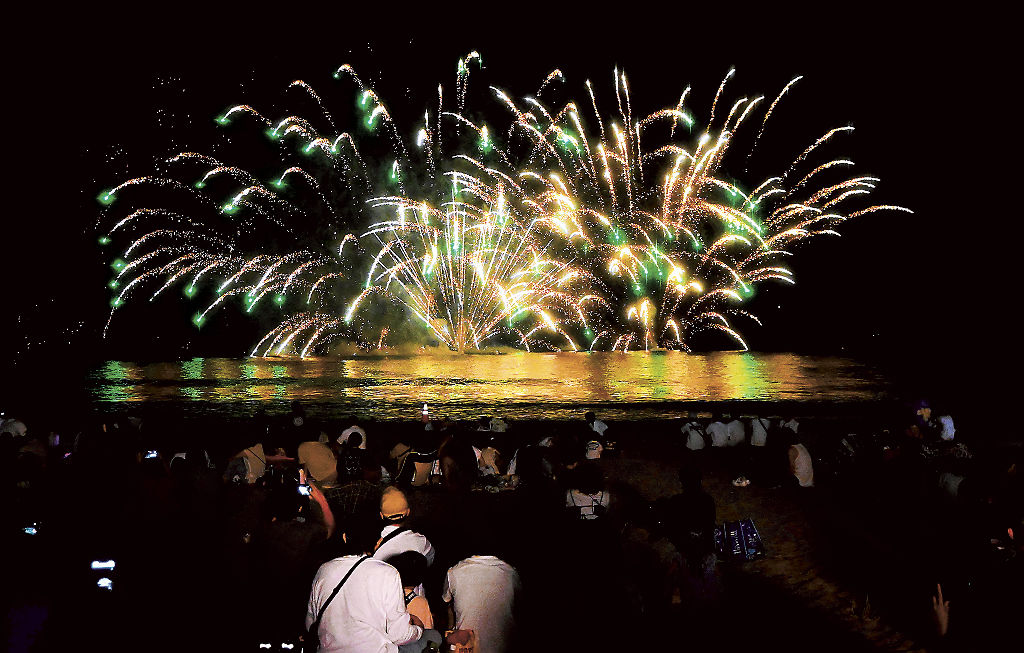 名物の水中スターマイン、観客魅了 さがら海上花火大会:中日新聞しずおかWeb。