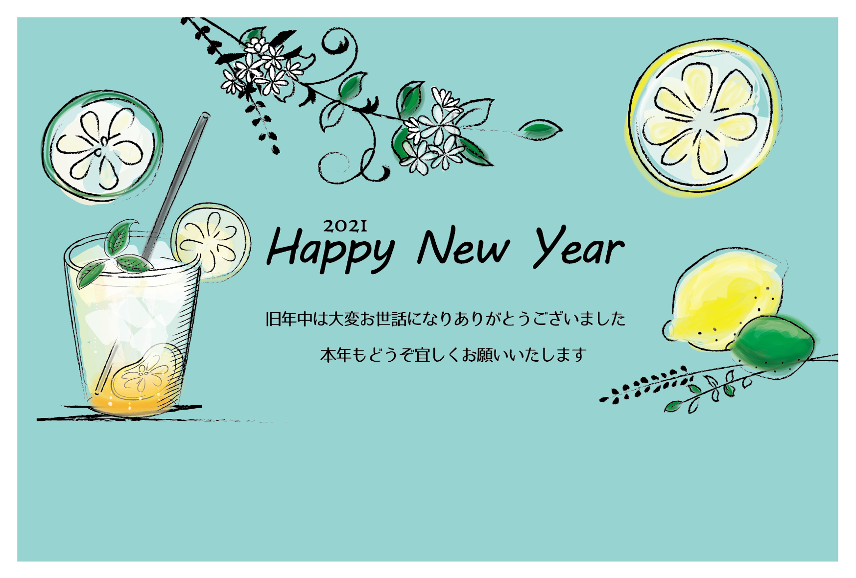無料 2021年 おしゃれ年賀状 レモン無料年賀状 Lemon。