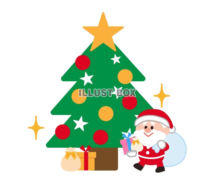 ツリーとサンタクロースのクリスマスイラスト:イラスト無料。
