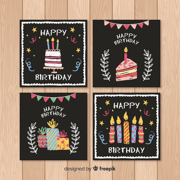 黒板バースデーカードコレクション無料ベクトル素材。