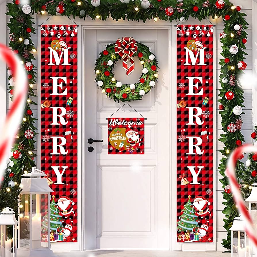 Amazon.co.jp: クリスマス バナー フロント ポーチ, 玄関ドア クリスマス飾りセット, フロント ポーチ クリスマス装飾屋外、ウェルカム クリスマスポーチ サイン : 本。