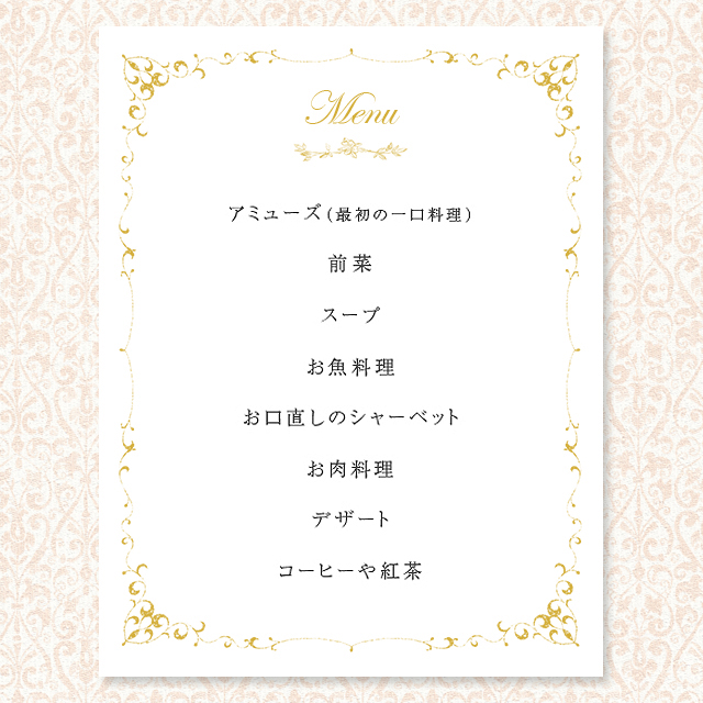 黄金千里 結婚式 メニュー表結婚式 メニュー表ならPIARY ピアリー。