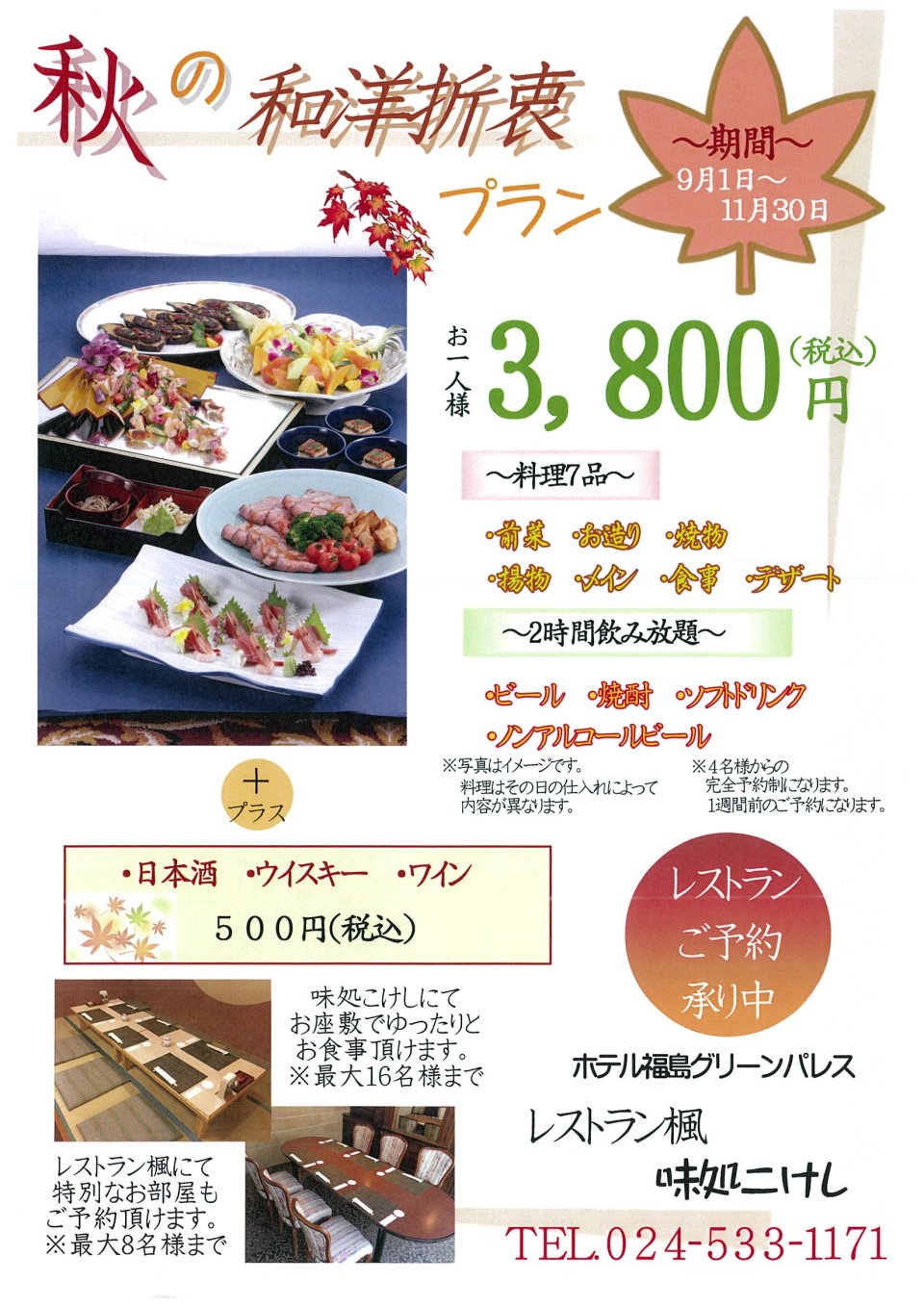 11月☆特薦和洋折衷 メニューのご案内 東急那須リゾート ホテルハーヴェスト那須のブログ - 宿泊予約は<じゃらんnet>。