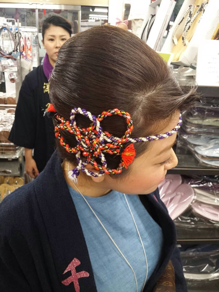 ねじり棒はちまきで「花結び」髪飾りを作る方法!お祭り髪型アレンジ紹介 │ 祭り用品専門店 祭すみたや の公式ブログ。