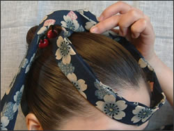 女性の鉢巻きの定番「くわがたかぶり」のやり方祭り衣装専門店祭すみたや スマホ対応。