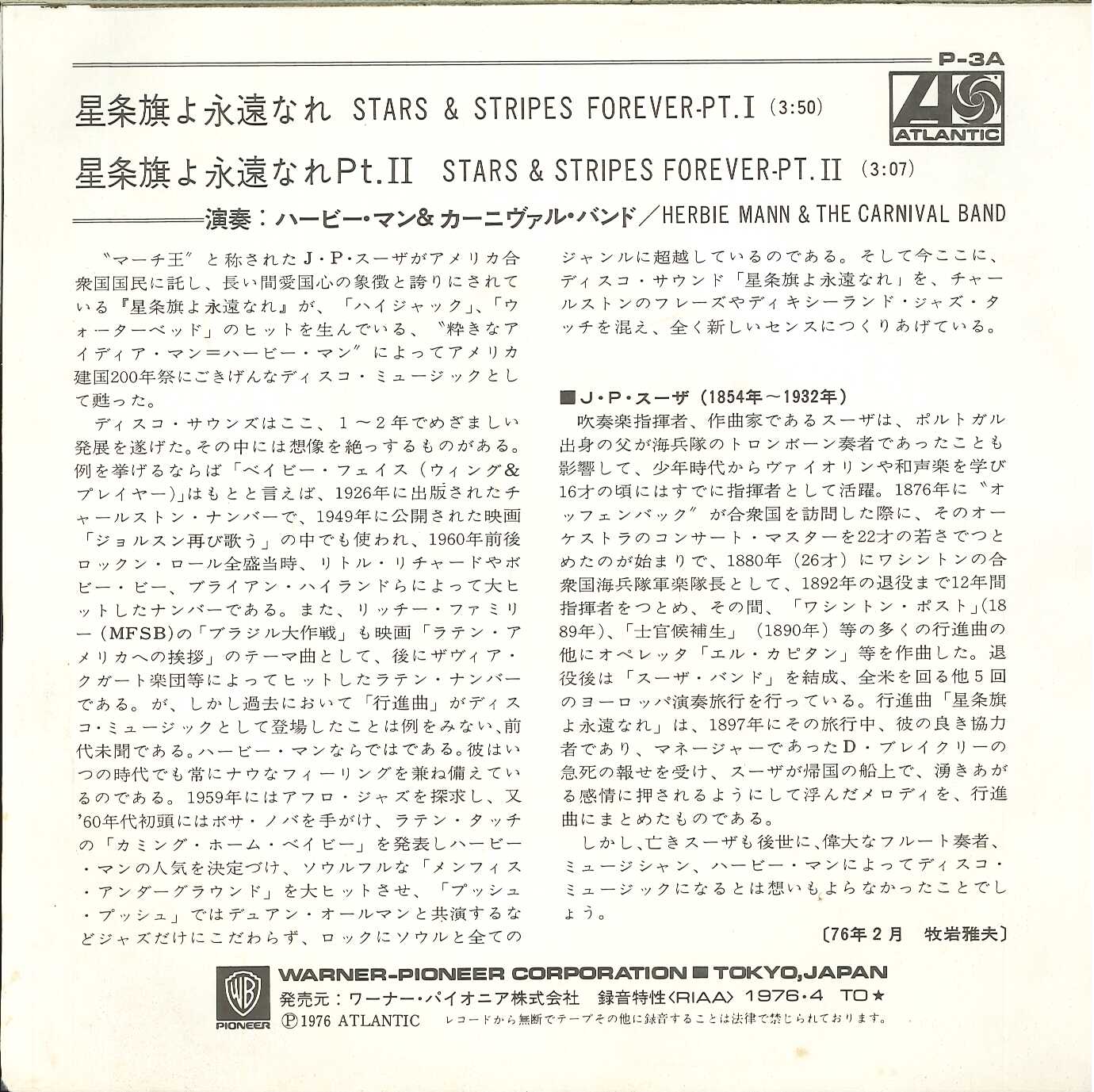 芽瑠璃堂 > ハービー・マン&カーニヴァル・バンド 『 中古盤星条旗よ永遠なれ パート2 7インチ 』SWDNT04064。