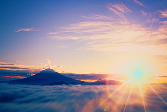 フリーイラスト富士山と雲海と初日の出でアハ体験GAHAG著作権フリー写真・イラスト素材集 - GAHAG著作権フリー写真・イラスト 素材集。
