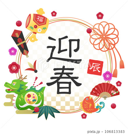 2024年 辰年 年賀 迎春フレームカットイラストのイラスト素材106813383- PIXTA。