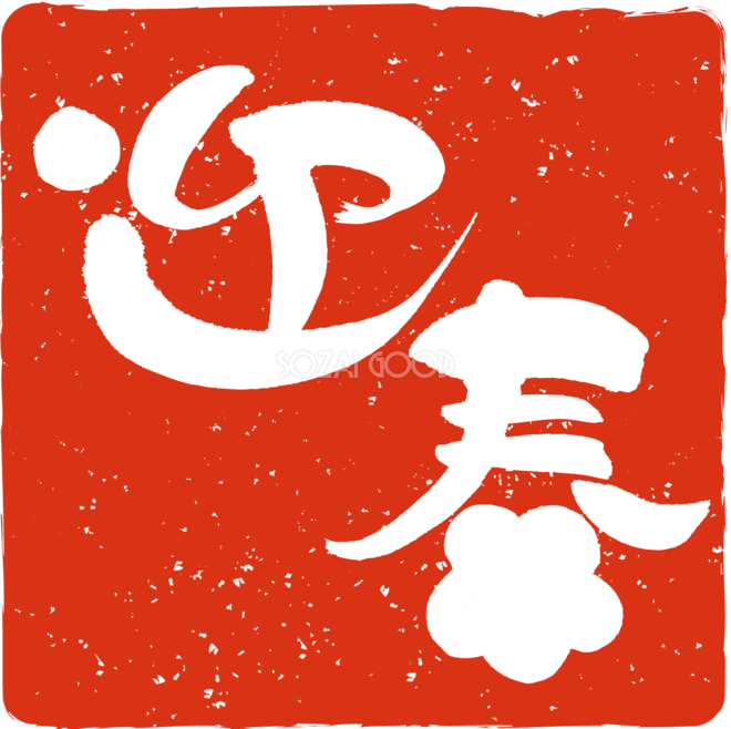 迎春の書道NO.02 朱印スタンプ ハンコ 年賀状筆文字無料イラスト82907素材Good。