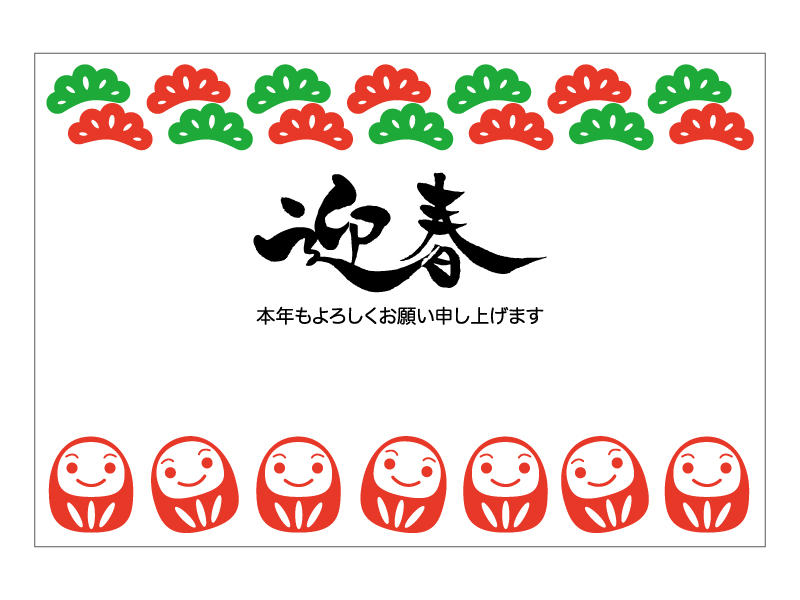 だるまと「迎春」の年賀状テンプレート年賀状の無料テンプレートやイラスト。