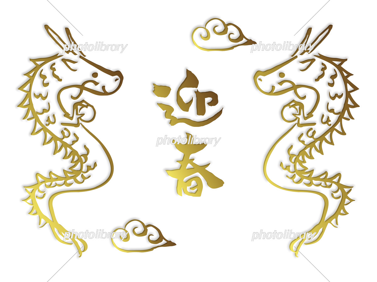 金の箔押し風の向かい合う龍と迎春の文字 2024年辰年の年賀状イラスト素材 イラスト素材7391413- フォトライブラリーphotolibrary。