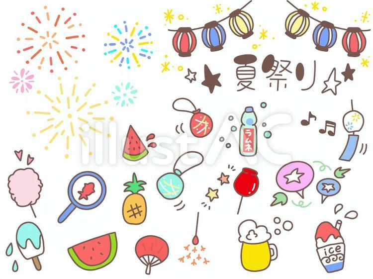 夏祭り 手描き素材セットイラスト - No: 2645687無料イラスト・フリー素材なら「イラストAC」。