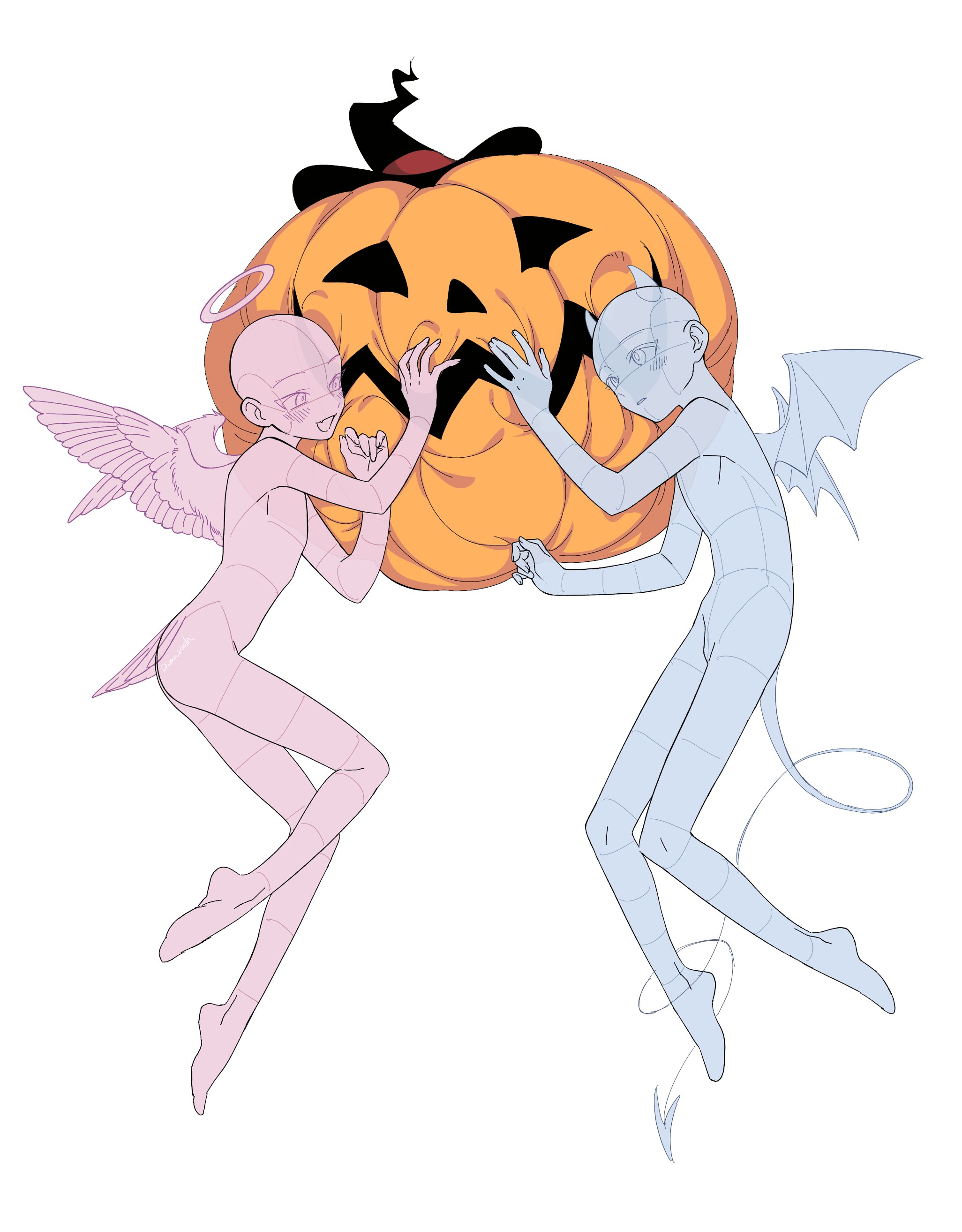 イラスト用トレス素材 on X: "悪魔と天使 ハロウィンぽい素材その1 お洋服や持ちものなど、色々変えて大丈夫です。表情ポーズ等も改変OK。トレス素材https:t.co 36tFbQQJfd"X。