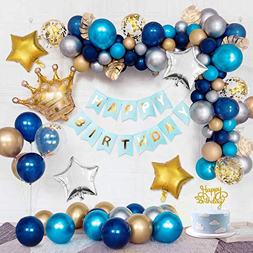 Amazon風船 誕生日バルーン 飾り付け セット バルーン ブルーHAPPY BIRTHDAY 装飾 バースデー 飾り ガーランド バースデーパーティー 男 女の子 空気入れ付き風船・バルーンおもちゃ。