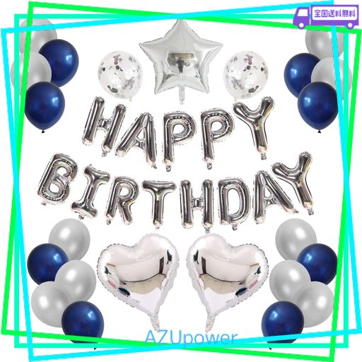 LAUSATEK 誕生日 バルーン 飾り付け 風船 ハッピー バースデー HAPPY BIRTHDAY ガーランド ハート風船 紙吹雪風船 装飾お祝い サプライズ シルバー ブルー パーティーセット クラッカー・紙吹雪・飾り。