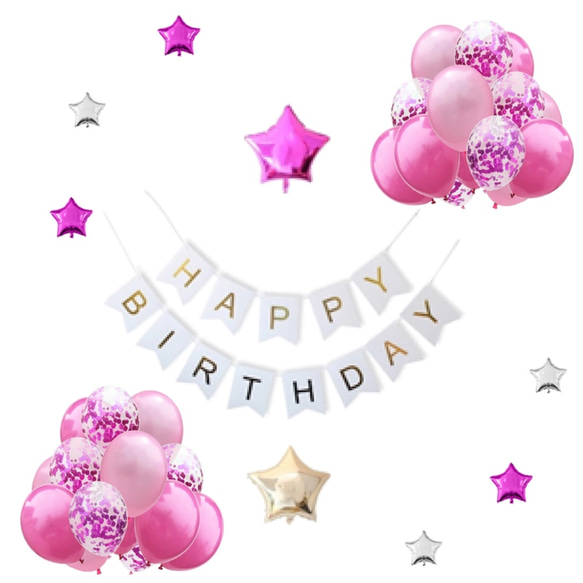 誕生日 飾り付け コンフェッティ バルーンHappy Birthday豪華 光沢 風船 装飾 セット ピンクその他インテリア雑貨grace shop 通販 6312318Creema クリーマ。