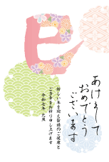 円形干支イラストの年賀状の無料年賀状テンプレート 8893 - デザインAC。