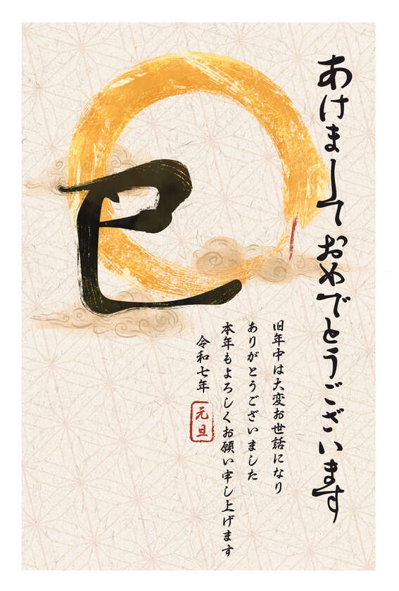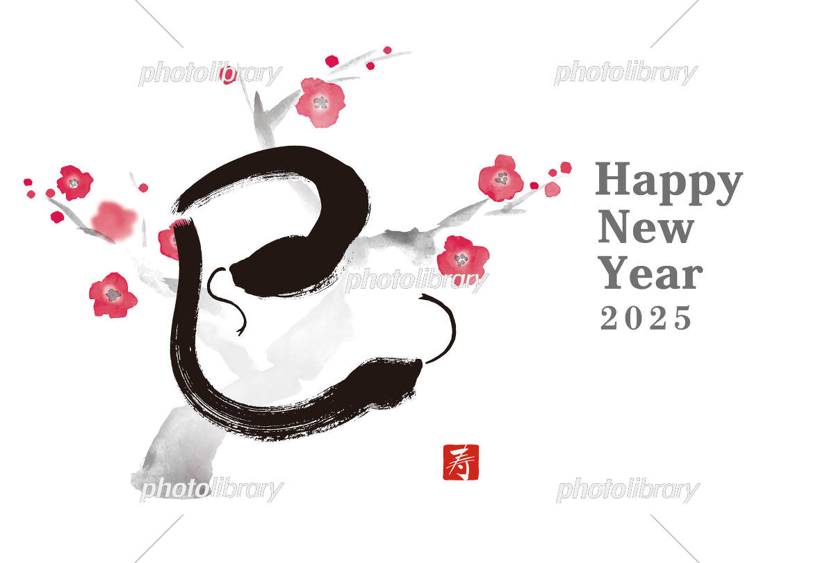 年賀状 デザイン 2025年 巳年 年賀状用テンプレート 手書き和風筆イラスト入り イラスト素材7531514- フォトライブラリ。