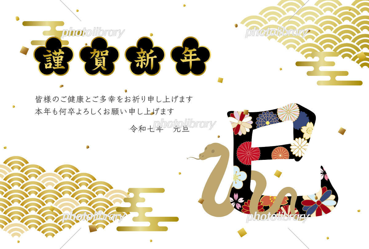 2025年巳年 和風花柄文字の年賀状テンプレート イラスト素材7572783- フォトライブラリ。