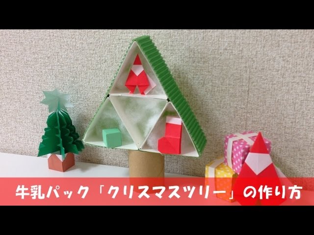 折り紙 サンタクロースとトムテのテトラパックの作り方クリスマス簡単工作オーナメントにもDIY How to make Santa Claus with paper Christmas。