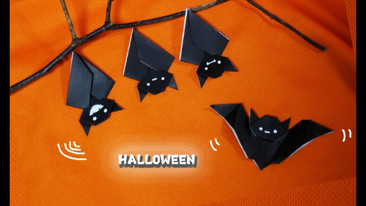 ハロウィン折り紙 逆さまにぶら下がるコウモリの作り方origami bad Halloween。