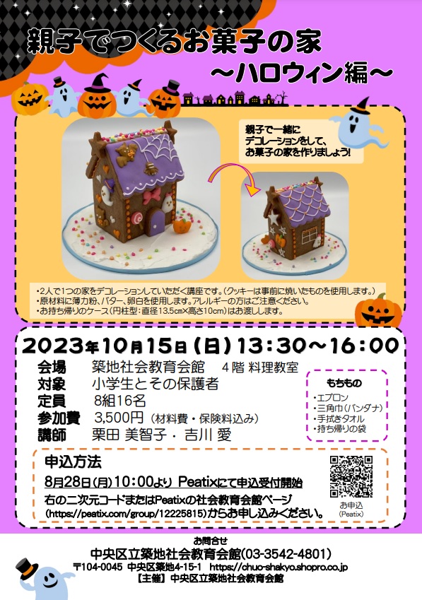 子どももおとなも一緒につくれるたのしい講座~ハロウィンクッキーをつくろう~中央区立社会教育会館。