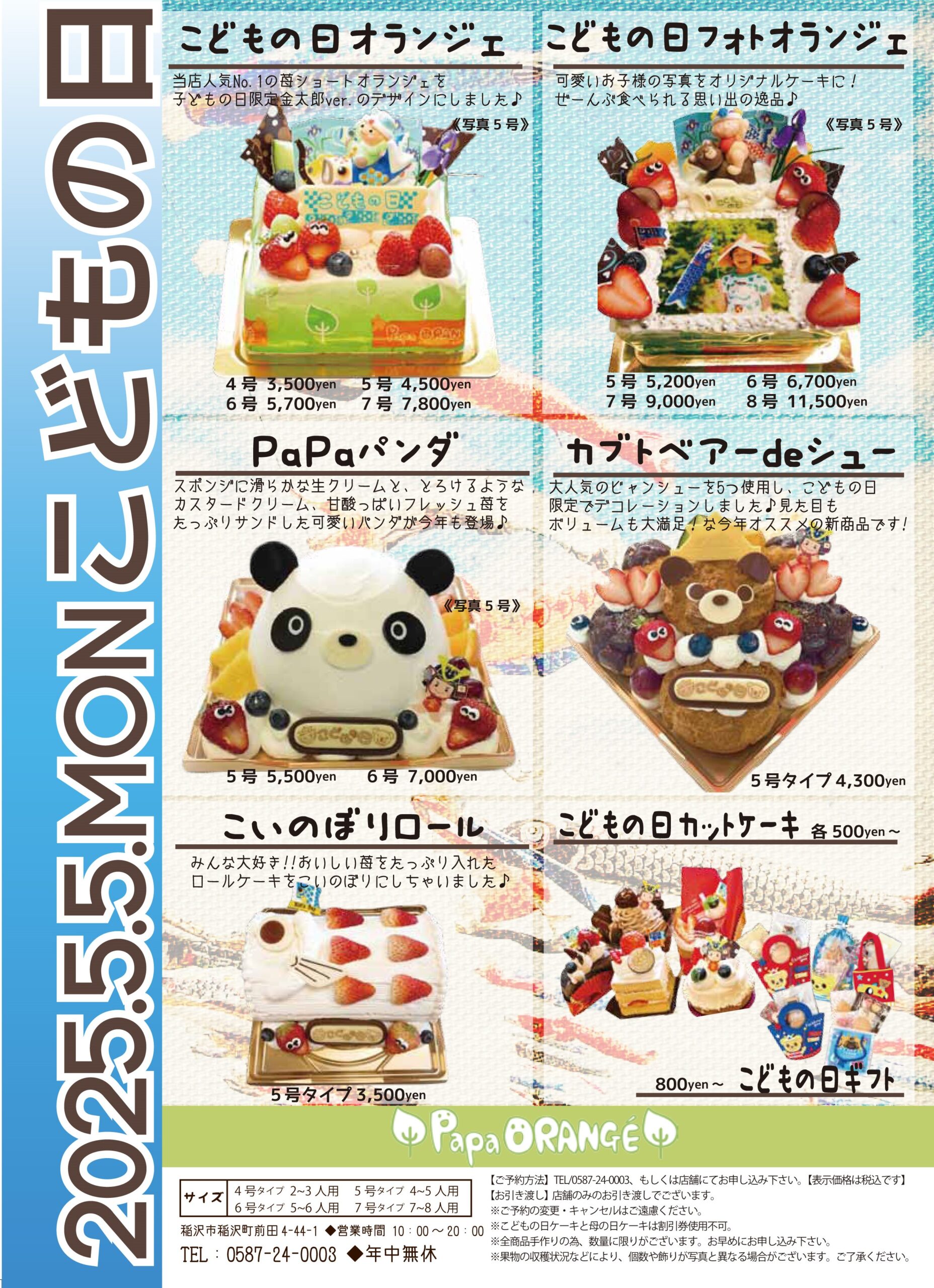 2025こどもの日のケーキラインナップスイーツ、デザートの菓子工房yamaoの公式ブログ。