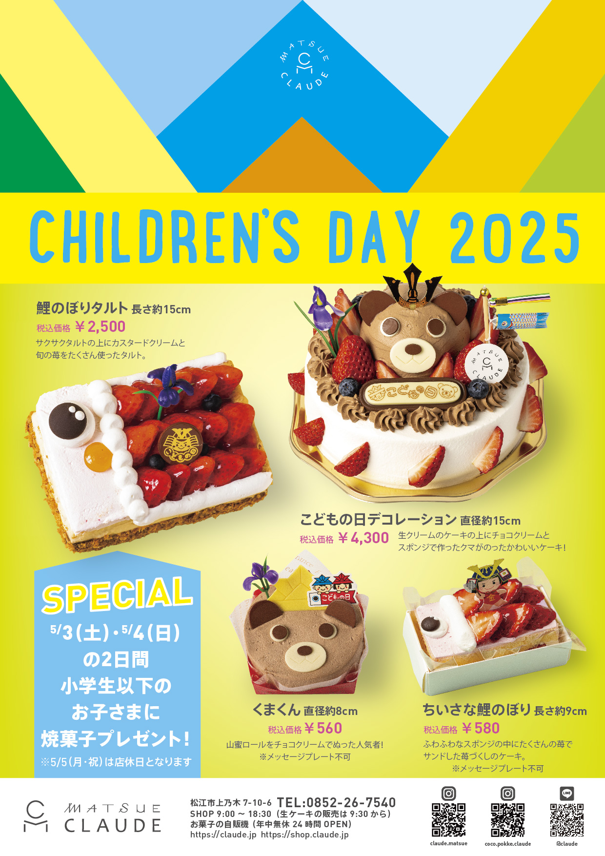 カタシマのこどもの日~HAPPY CHILDREN'S DAY 2025~お知らせKATASHIMA パティスリー&カフェ カタシマ。