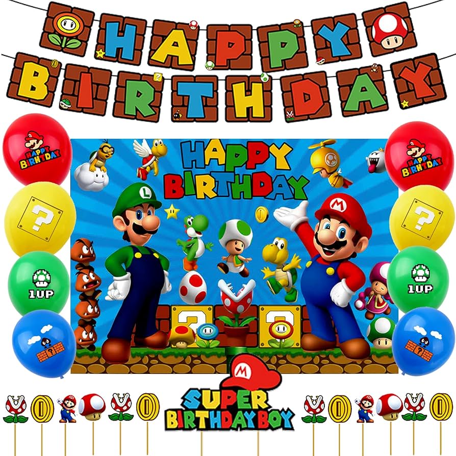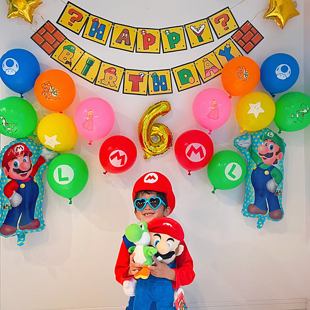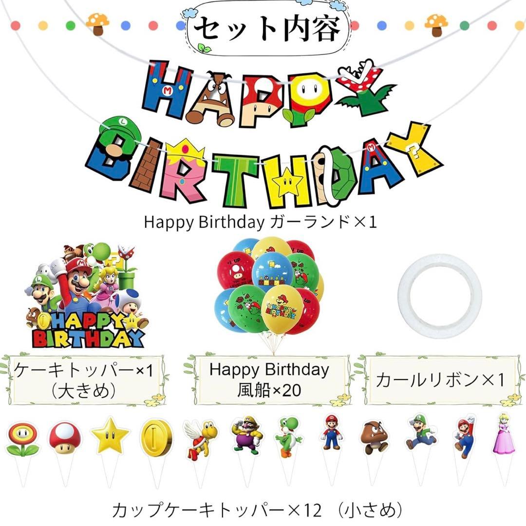 Amazonマリオ 誕生日 飾り付け 風船セット マリオ誕生日パーティー飾り ハッピーバースデーバナーお祝い バースデーバルーン 室内装飾風船・バルーンおもちゃ。