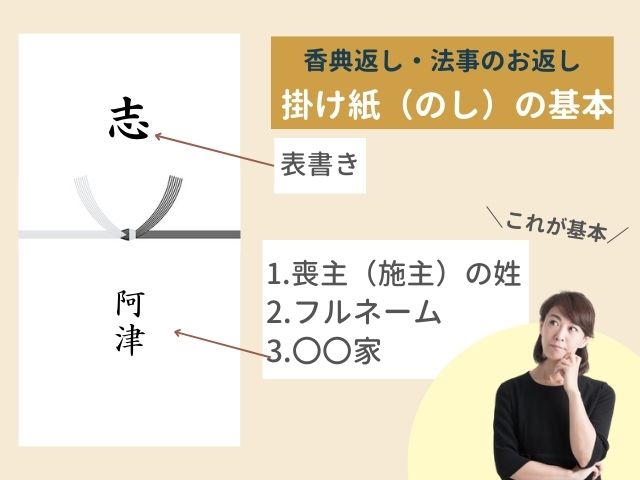 香典返し・法事掛け紙 のし に書く名前・郵送時の差出人名はギフタ。